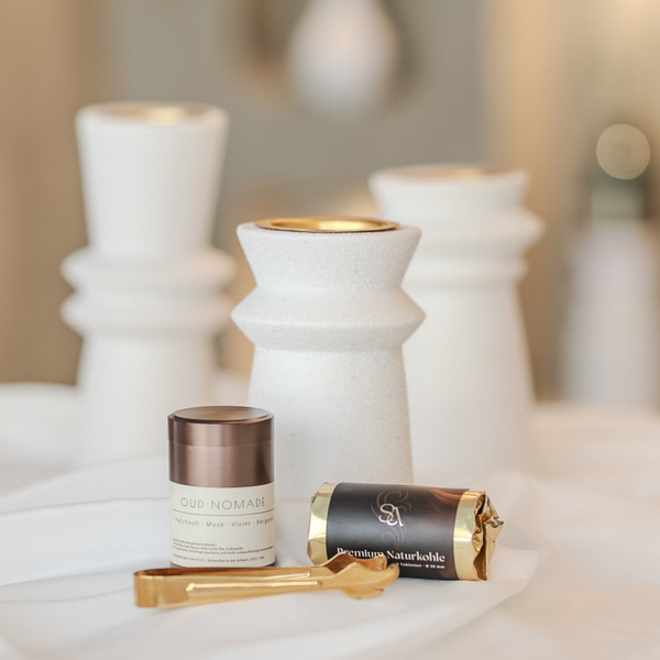 Ein harmonisches Set aus Design und Duft. Wähle dein Gefäss und deinen Bakhoor Duft.